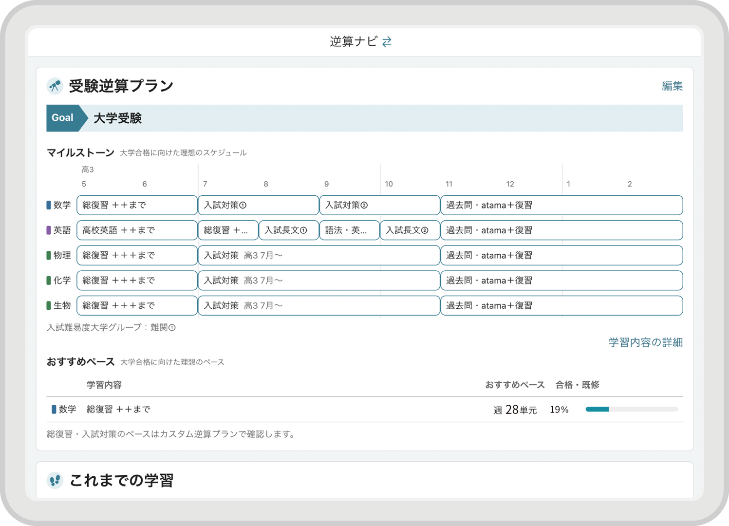 • 志望校入試から逆算した学習計画